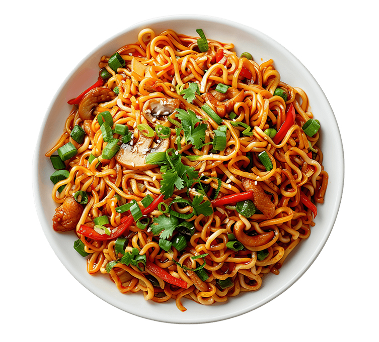 Indulge in our flavourful veggie lo mein, loaded with colourful medley of fresh vegetables, expertly stir-fried with tender noodles.